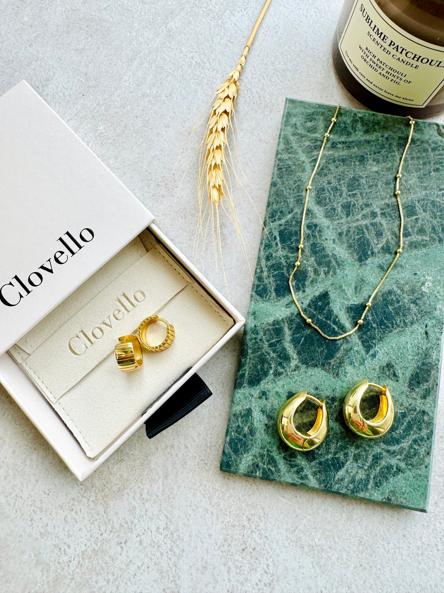 All our jewellery comes individually packed in our re-useable Clovello pouches and drawer boxes, perfect for storing your jewellery between wear.